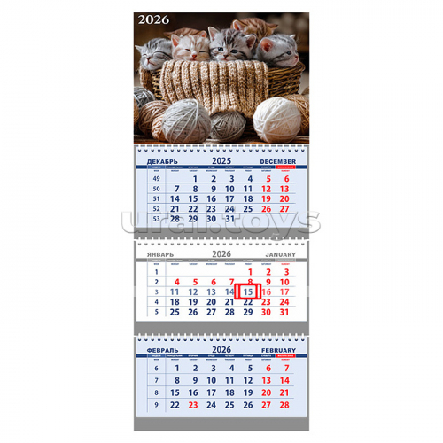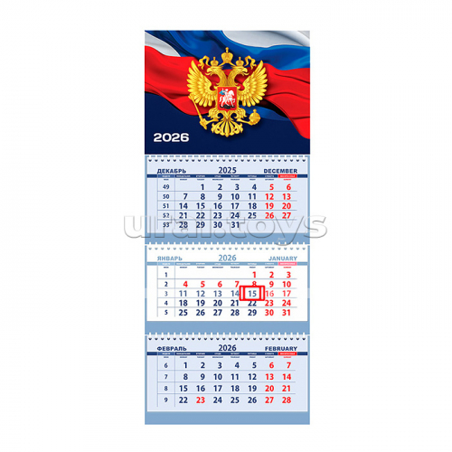 Календарь квартальный на 2026 г. "Флаг на синем фоне" (295x700 мм) на 3-х пружинах, складной