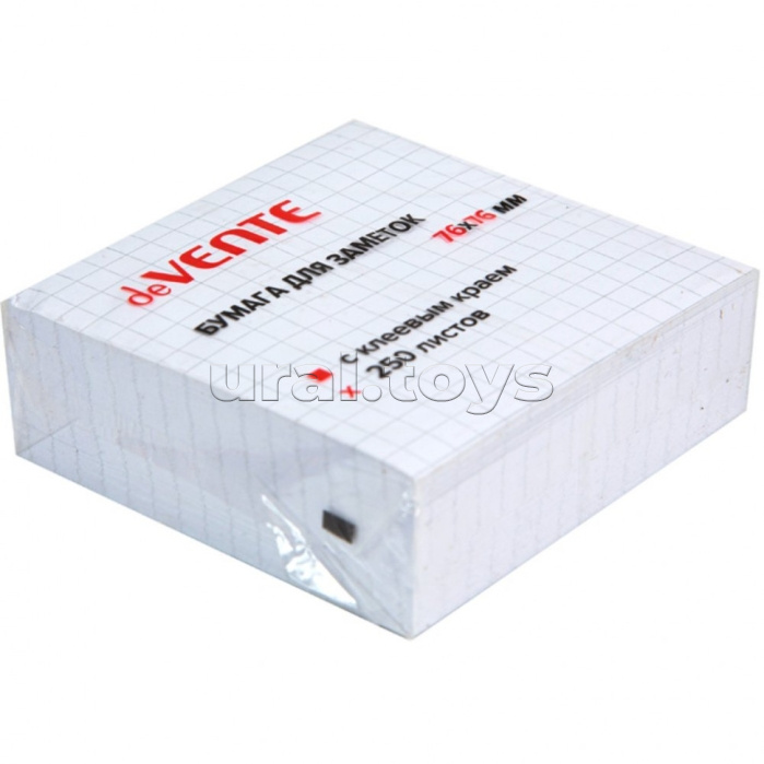 Клейкая бумага для заметок 76x76 мм, 250 листов, офсет 75 г/м², белая в клетку