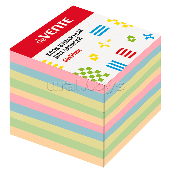 Куб бумажный для записей 60x50x40 мм цветной, проклеенный, офсет 80 г/м², 5 пастельных цветов, 10 слоев