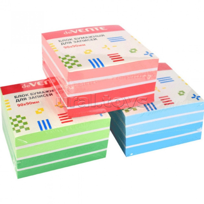 Куб бумажный для записей 90x90x50 мм цветной, непроклеенный, офсет 80 г/м², 1 пастельный, 1 интенсивный и белый цвет