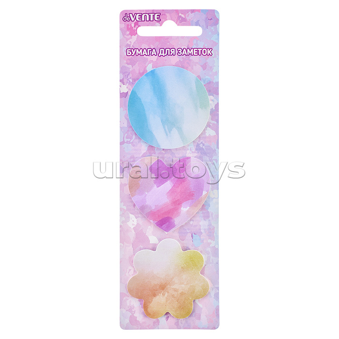 Набор клейкой бумаги для заметок "Aquarelle" 45x45 мм, 3x20 листов, офсет 80 г/м², печать 4+0, ассорти форм, 3 дизайна, в картонном блистере и пластиковом пакете с европодвесом