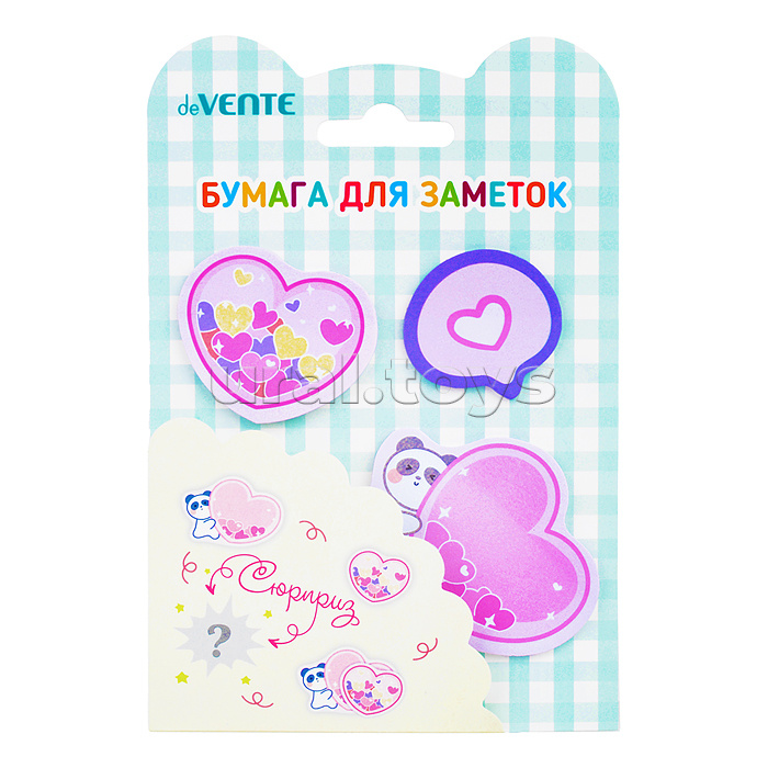Набор клейкой бумаги для заметок с сюрпризом "Panda" 120x180 мм, размер заметок: 70x70 мм, 50x50 мм и 40x40 мм, 4x20 листов, офсет 80 г/м², печать 4+0, ассорти форм, 4 дизайна, в картонном блистере и пластиковом пакете