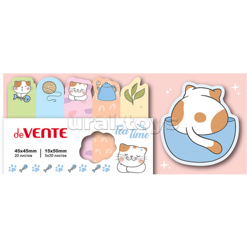 Набор самоклеящихся этикеток-закладок "Attomex" пластиковые полупрозрачные 45x12 мм, 5x20 листов, 5 неоновых цветов, в пластиковом пакете с европодвесом