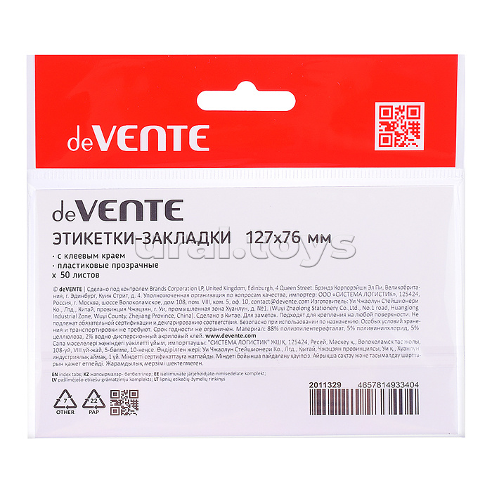 Самоклеящиеся этикетки пластиковые прозрачные, 127x76 мм, 50 листов, в пластиковом пакете