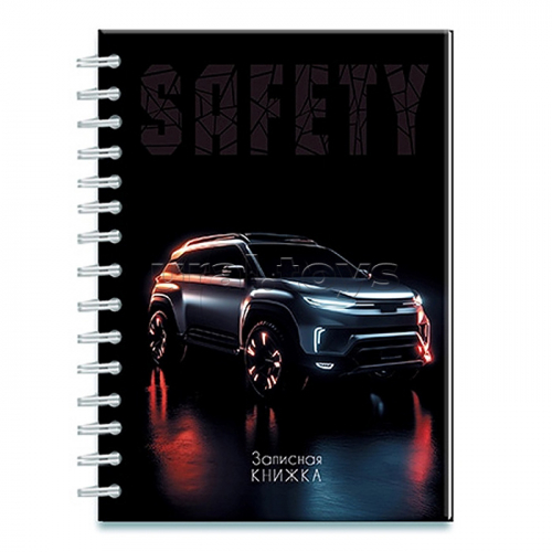 Записная книжка 100л. А6 на гребне 7БЦ, "Авто на черном"