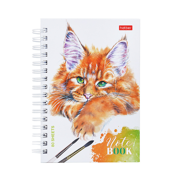 Записная книжка 80л А6ф "Рыжий котик" 2-х цветная клетка с твердой обложкой двойная на гребне глянц. ламин
