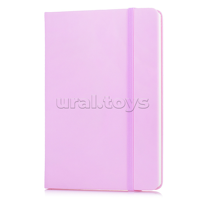 Записная книжка B6 (120 ммx170 мм) 160 стр, кремовая бумага 70 г/м² в клетку, печать в 1 краску, твердая обложка из искусственной кожи с покрытием Soft Touch, вертикальная резинка, закругленные уголки, 1 ляссе, в термоусадочной пленке, розовая