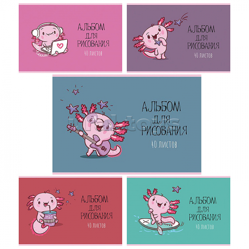 Альбом для рисования 40л. А4 скрепка S "Аксолотль" УФ Твин выбор