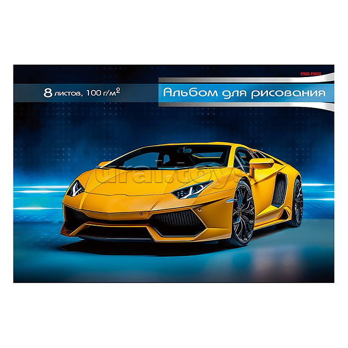 Альбом для рисования 8л. "Желтое спортивное авто - 1" скрепка