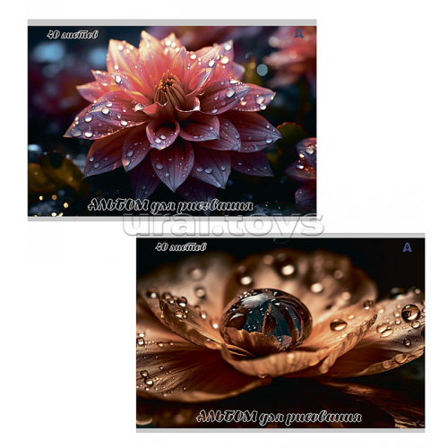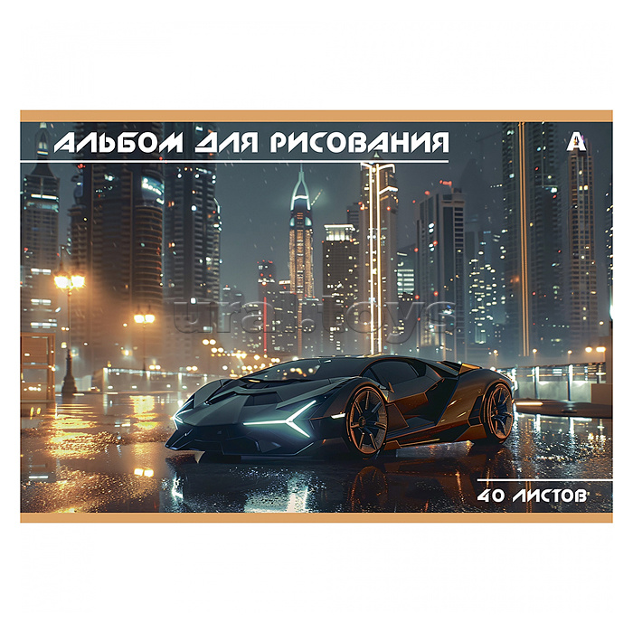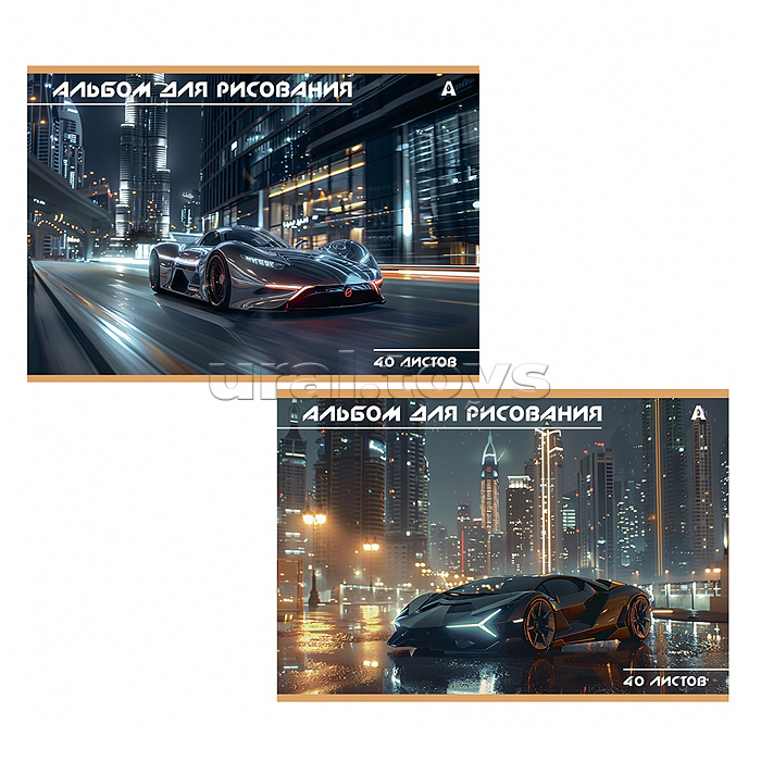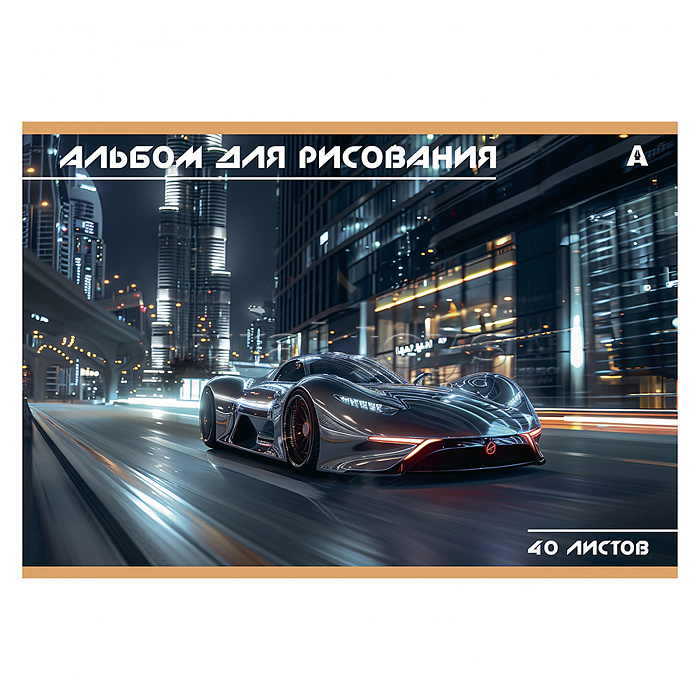 Альбом для рисования А4 40л., Alingar, на скрепке, мелованный картон (стандарт), 100 г/м2, "Авто", 2 дизайна в пленке т/у