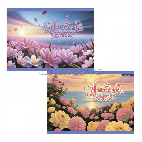 Альбом для рисования А4 40л. на скрепке ,мелованный картон, "Цветочное поле", 2 дизайна