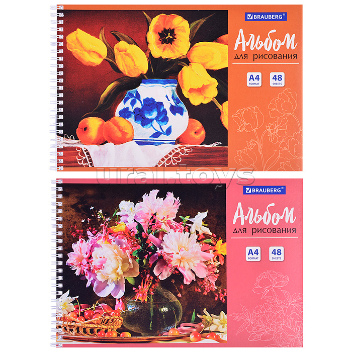 Альбом для рисования, А4, 48 л., "Цветы" (2 вида) гребень,
