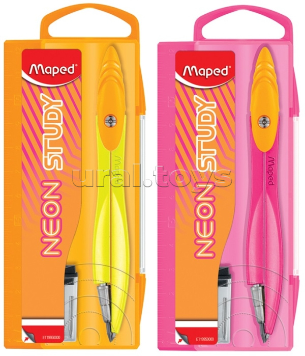 Циркуль из цинкового сплава, с эргономичной головкой, с грифелем, в пластиковом футляре, яркие неоновые цвета