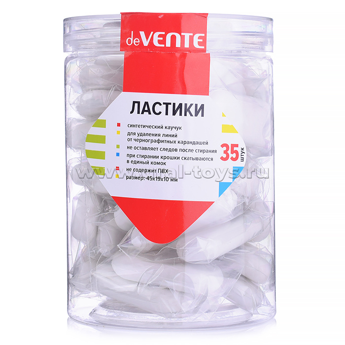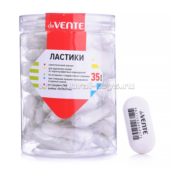 Ластик "Ellipse" синтетический каучук, овальный белый, 45x19x10 мм, dust-free, в индивидуальной упаковке с штрих кодом, в пластиковой банке