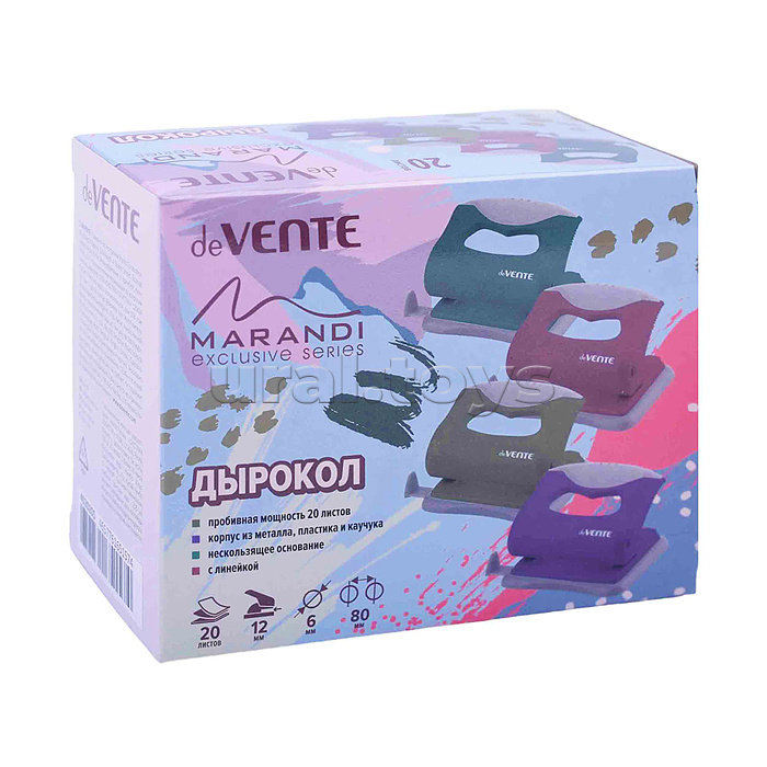 Дырокол "Marandi" (20 листов) пластиковый с каучуковой вставкой, с линейкой