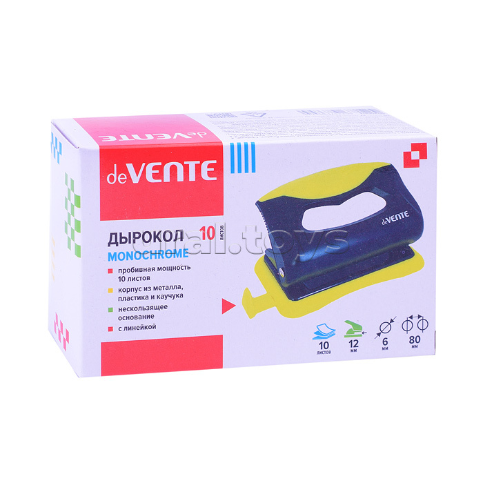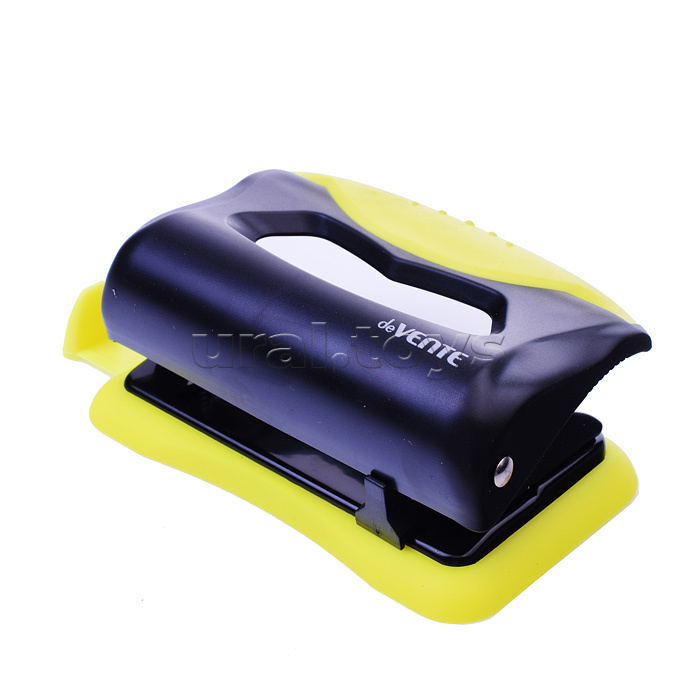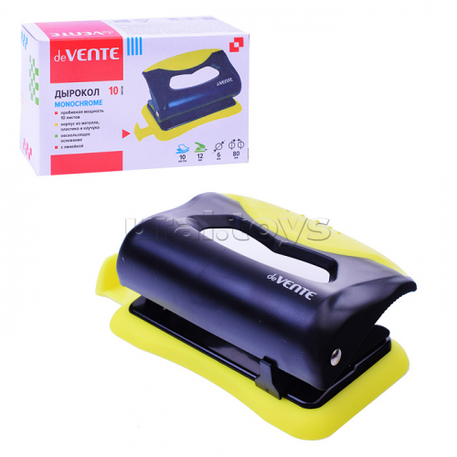 Дырокол "MonoChrome" (10 листов) пластиковый с каучуковой вставкой, с линейкой, в картонной коробке, черный с неоновым желтым