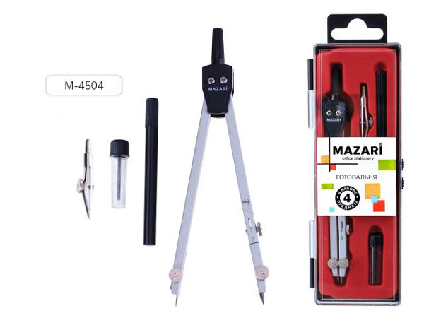 Готовальня 4пр. (циркуль, насадка на рейсфедер, держатель для рейсфедера)