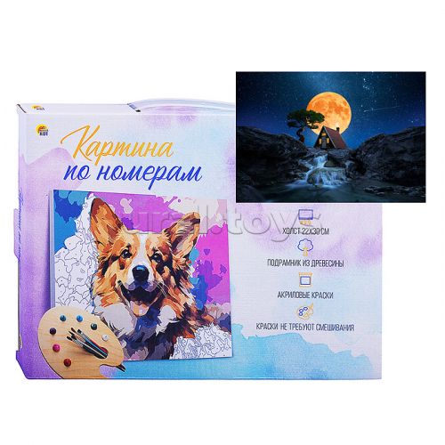 Холст с красками 22х30 по номерам "Сказочная ночь" (16цв.)