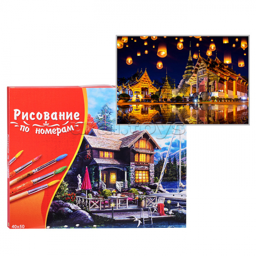 Холст с красками 40х50 Палитра. Фанарики в вечернем Бангкоке (20 цв)
