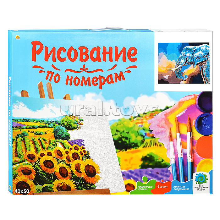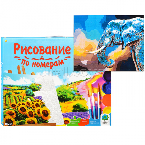 Холст с красками 40х50 по номерам "Задумчивый слон" (23 цв.)