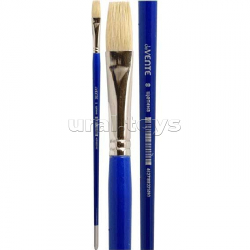 Кисть художественная "Art" щетина № 02 плоская, удлиненная деревянная ручка с многослойным лакокрасочным покрытием, никелированная обойма, индивидуальная маркировка