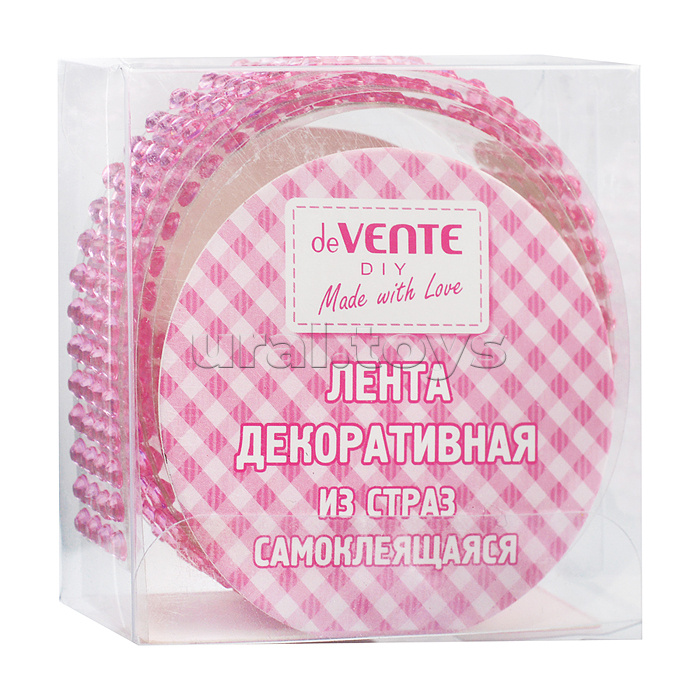 Клейкая лента декоративная "Стразы" розовая, акриловые стразы на полиэтиленовой основе, 16 ммx50 см, картонная втулка, в пакете с блистерным подвесом