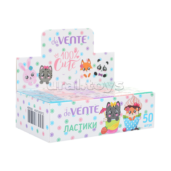 Ластик "100% Cute" синтетический каучук, прямоугольный цветной, 32x23x7 мм, dust-free, индивидуальная маркировка, в картонном дисплее
