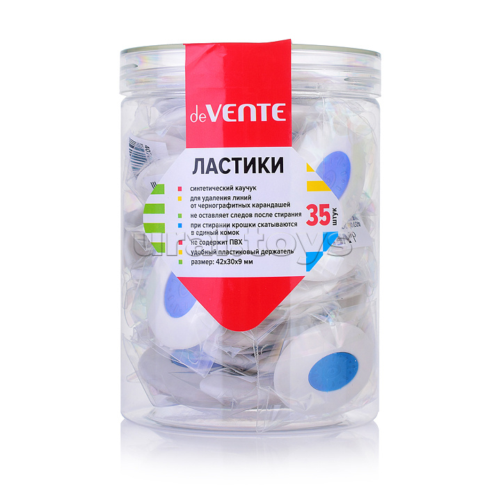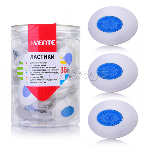 Ластик "Core" синтетический каучук, овальный белый, 42x30x9 мм, dust-free, с пластиковым держателем, в индивидуальной упаковке с штрих кодом, в пластиковой банке
