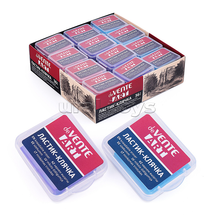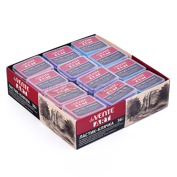 Ластик-клячка "ART" синтетический каучук, прямоугольный, ассорти 3 пастельных цвета, 39x35x9,5 мм, мягкая текстура, в плёнке и в индивидуальной пластиковой упаковке со штрих кодом