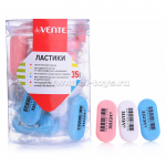 Ластик "Pastel" синтетический каучук, прямоугольный цветной, 37x24x11 мм, в индивидуальной упаковке со штрих кодом, в картонном дисплее