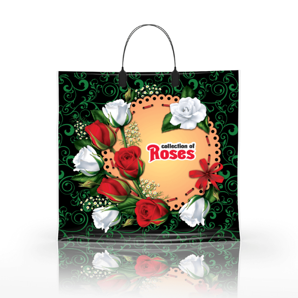 Полиэтиленовый пакет ПВД с пластиковой ручкой 80 мкм 36х34 см Коллекция роз 10 шт