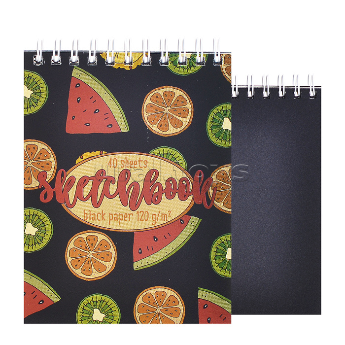Скетчбук 40л. А6 гребень S Коктейль (бумага чёрная 120 г/кв.м ) Премиум