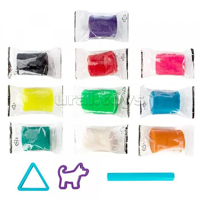- 10 пакетиков с тестом-пластилином (5 классических, 5 с блестками),