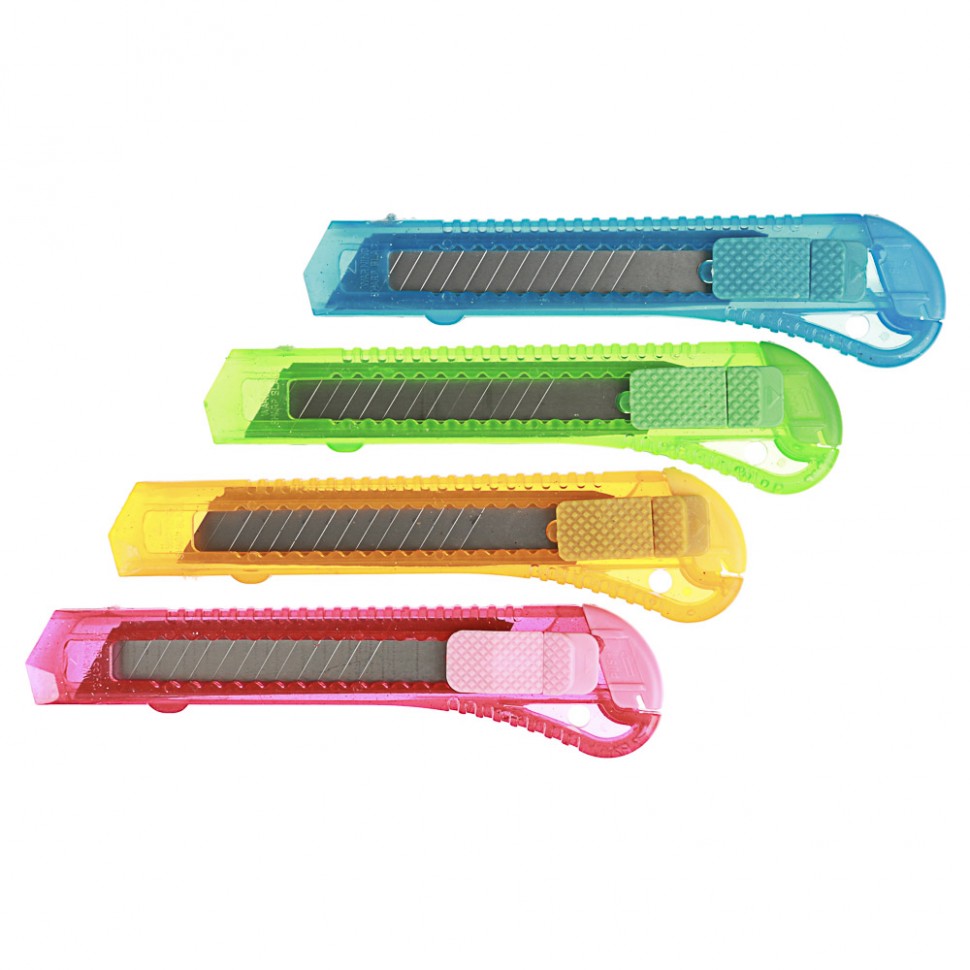 Нож канцелярский средний, лезвие до 18мм, 15,5x3см, ассорти 4 цвета, в пакете (12)