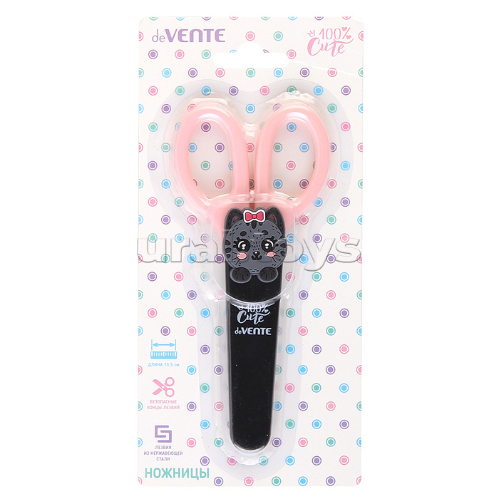 Ножницы детские "Cute. Cat" 13,5 см, пластиковые кольца, защитный футляр с каучуковым декоративным элементом