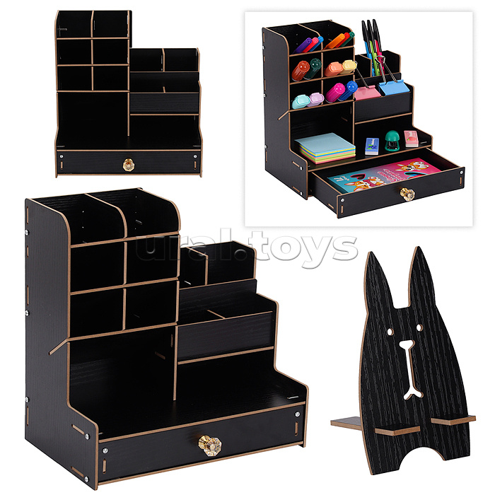 Органайзер для канцелярских принадлежностей "Elrix" настольный, 24,5x15x25,5 см, материал - МДФ, цвет черный, без наполнения, в картонной коробке