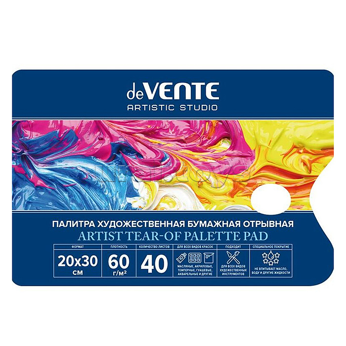 Палитра для красок A4 (200x300 мм) 40 листов "ARTISTIC STUDIO" блок бумага 60 г/м² с водоотталкивающим покрытием, скрейка, термоусадочная пленка