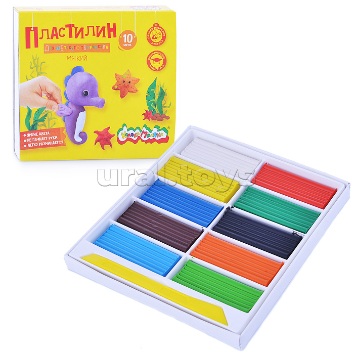Пластилин 10 цв. 150 г, со стеком