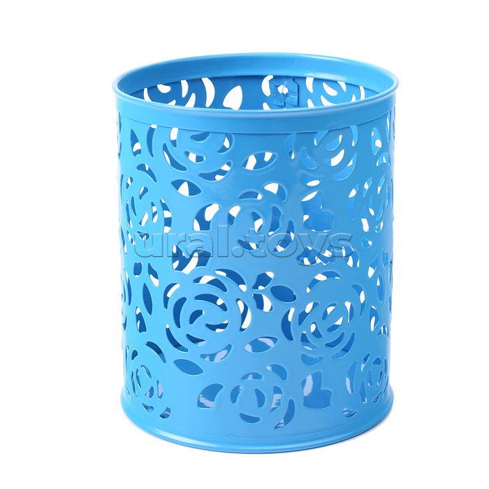 Подставка для пишущих принадлежностей, 8x8x9,8 см, круглый, ажурный сетчатая металлическая, голубой