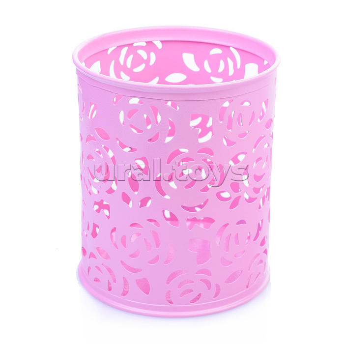 Подставка для пишущих принадлежностей 8x8x9,8 см, круглый, ажурный сетчатая металлическая, розовый