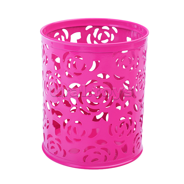 Подставка для пишущих принадлежностей 8x8x9,8 см, круглый, ажурный сетчатая металлическая, ярко-розовый