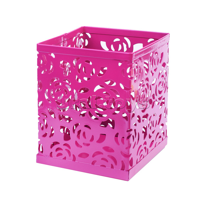Подставка для пишущих принадлежностей 8x8x9,8 см, квадратный, ажурный сетчатая металлическая, ярко-розовый