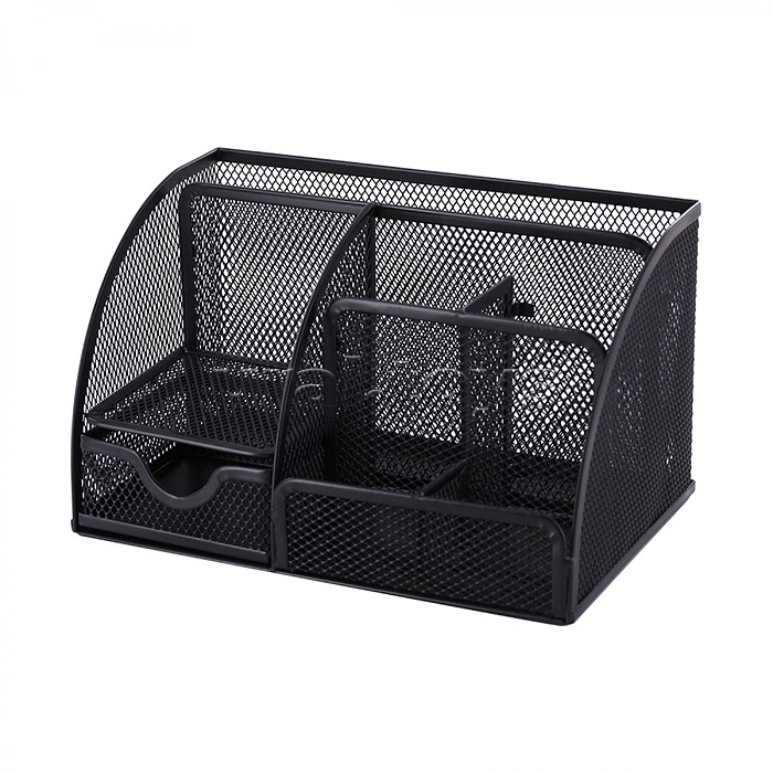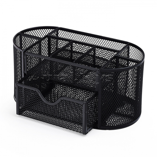 Подставка-органайзер д/канцтоваров, металлическая, прямоугольная, 22х14см, 7 отделений, черная