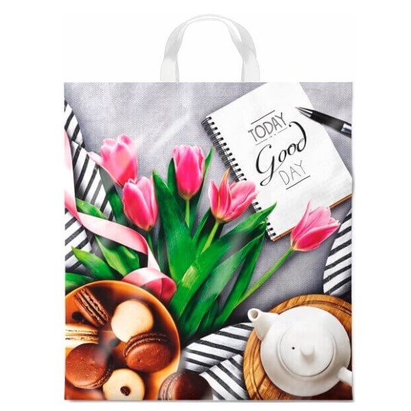 Полиэтиленовый пакет ПВД с петлевой ручкой 40 мкм 38х42 см Завтрак 25 шт