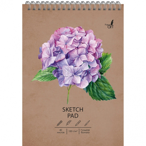 Скетчпад А5 40л. "Гортензия" евроспираль по короткой стороне. Обл.: крафт картон, выборочный лак