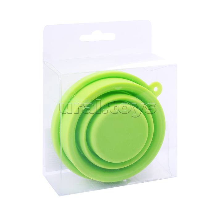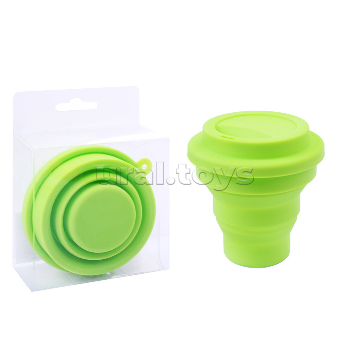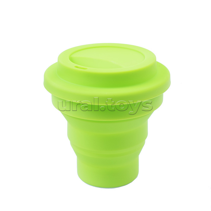 Стакан для ИЗО "School" силиконовый, складной, в собранном виде 80x90x80 мм, в сложенном 80x10x80 мм, с силиконовой крышкой, неоновый салатовый
