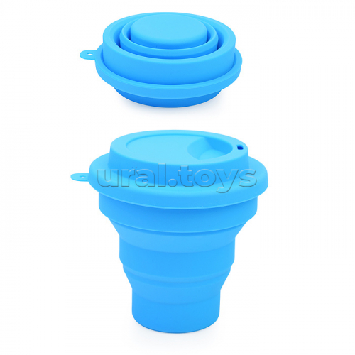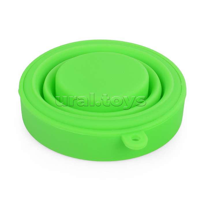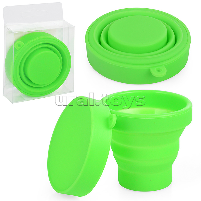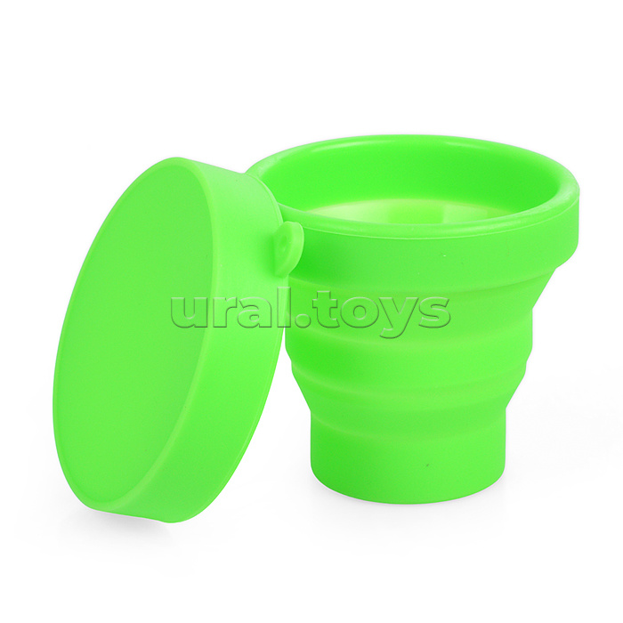 Стакан складной "Mini" 180 мл, диаметр 8 см, высота 8 см, в сложенном виде 2,2 см, силиконовый, с силиконовой крышкой, неоновый зеленый