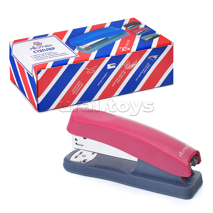 Степлер "Attomex" 24/6&26/6 (мощность 25 листов, глубина скрепления 56 мм) пластиковый, в картонной коробке, красный