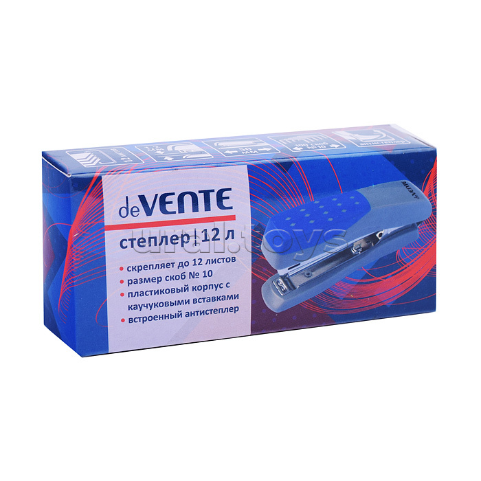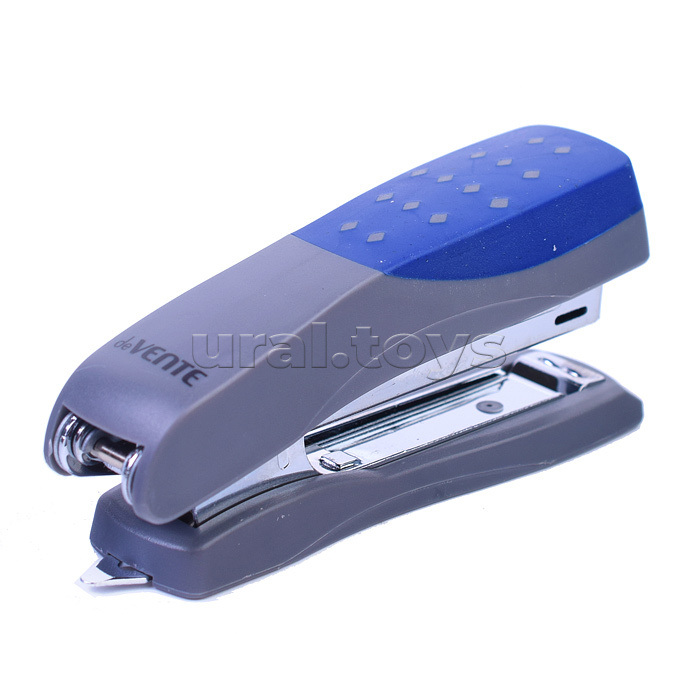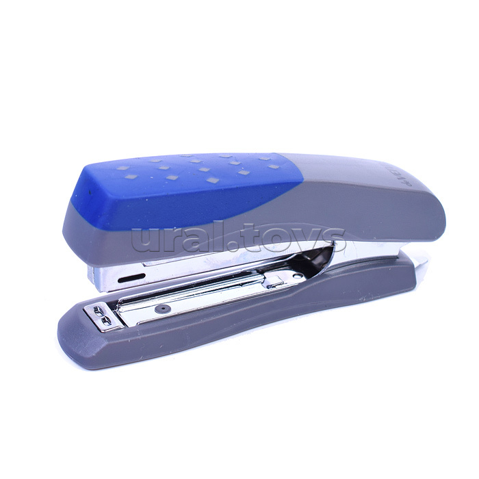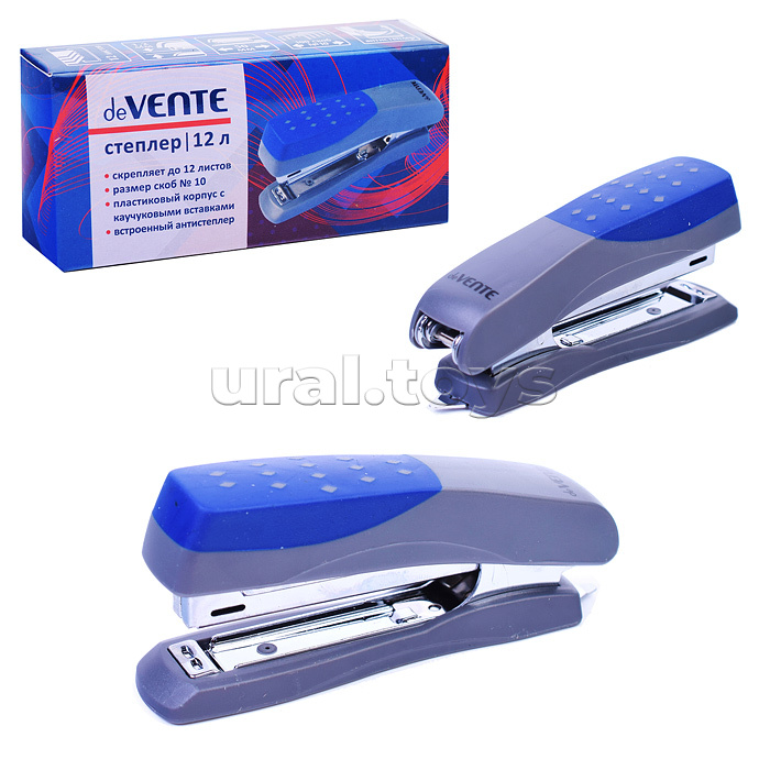 Степлер "Duos" № 10 (мощность 12 листов, глубина скрепления 60 мм) пластиковый с каучуковой вставкой, в картонной коробке, серый с синим