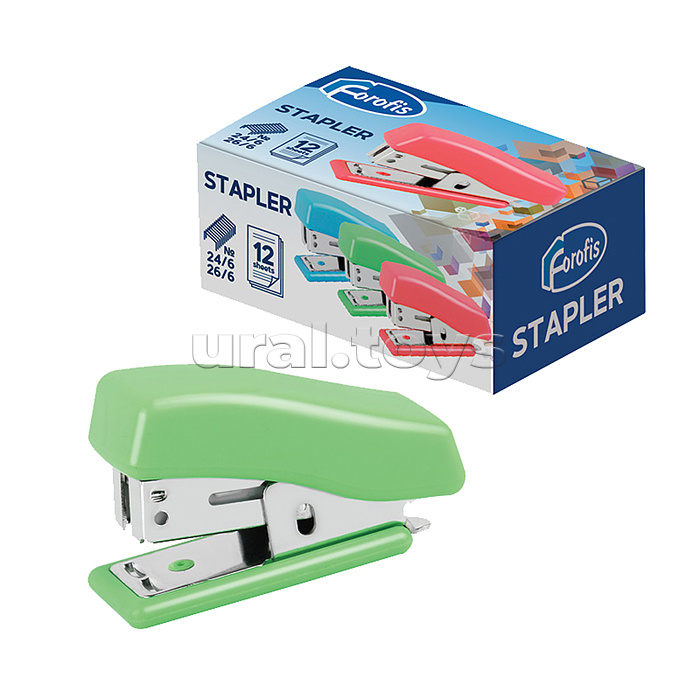 Степлер пластиковый 12лист. MINI с метал.механизмом (зеленый)